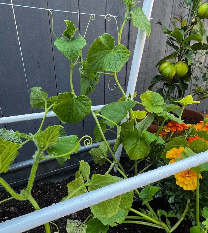 This modern A-frame trellis is a sleek and sturdy design that provides colorful support for edible or ornamental plants. Perfect to pop up raised garden bed or an in-ground garden. This trellis will be a beautiful architectural element in your garden year-round. Gardening string can be tied to top and bottom bars for additional vertical climbing. Self-standing and impactful in multiples.