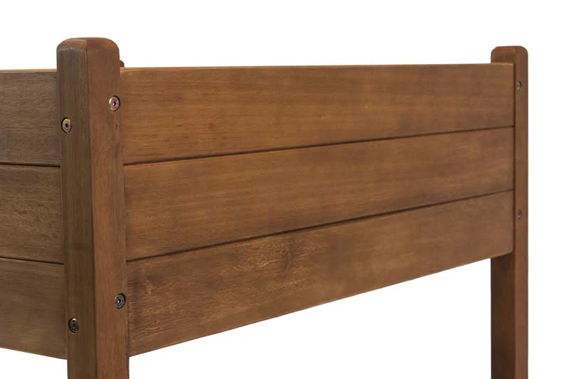 The Garden Wizard Eucalyptus is a 3x3 foot garden that's designed to be simple yet beautiful for any garden need. The warm, red-stained wood is attractive and soft on hands yet very durable and able to hold up under stressful conditions. With real, solid eucalyptus wood being used, you can trust in using a natural, renewable resource that will last for years against harsh environments. The bed sits two feet off of the ground allowing better access than regular ground-based gardens and it deters most common rodents and other wildlife. Assembly is simple thanks to the limited number of components and takes only minutes to complete. The Eucalyptus can be placed around the yard or on decks and patios. Create a simple vegetable garden or a beautiful floral arrangement. Garden fabric is recommended and not included.